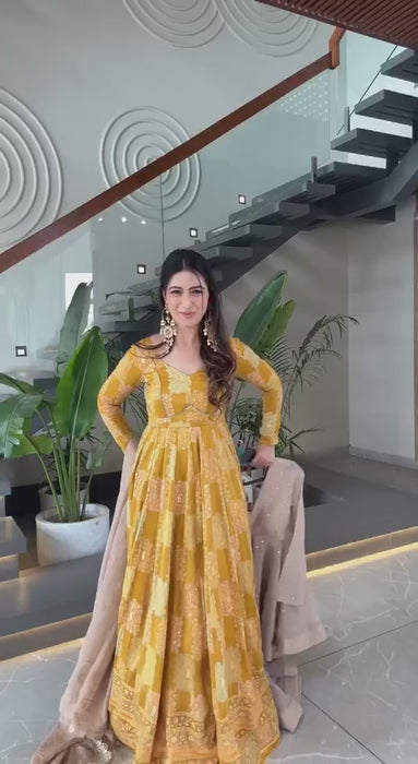 Quickshop Brighten up your ethnic wardrobe with this graceful mustard yellow floral printed...