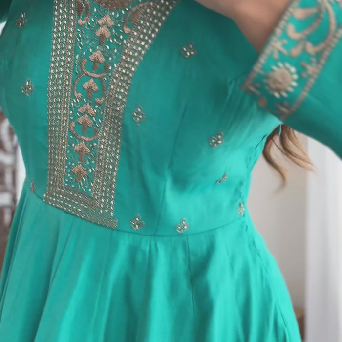 Rama Color Chanderi Pure Roman Silk Anarkali Suit Rama Color Chanderi Pure Roman Silk Anarkali Suit